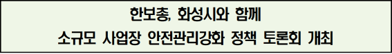 [보도자료] 한보총, 화성시와 함께 소규모 사업장 안전관리강화 정책 토론회 개최